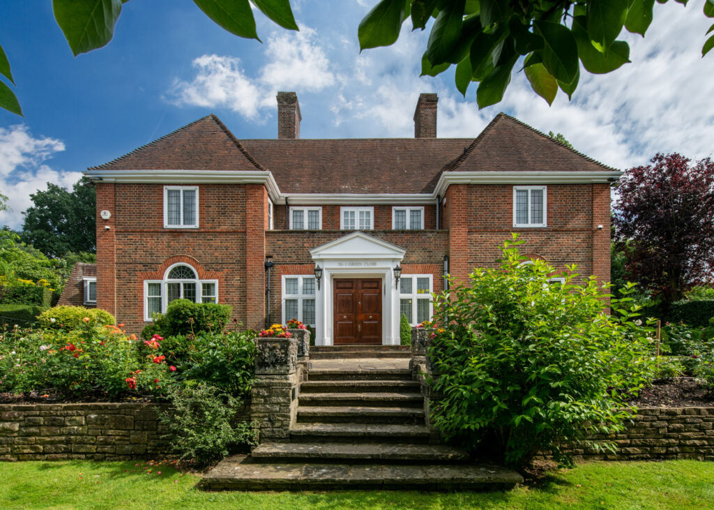 A superb low built double fronted detached family residence set behind a sweeping carriage driveway occupying a prominent position in one London’s premier prestigious residential roads.